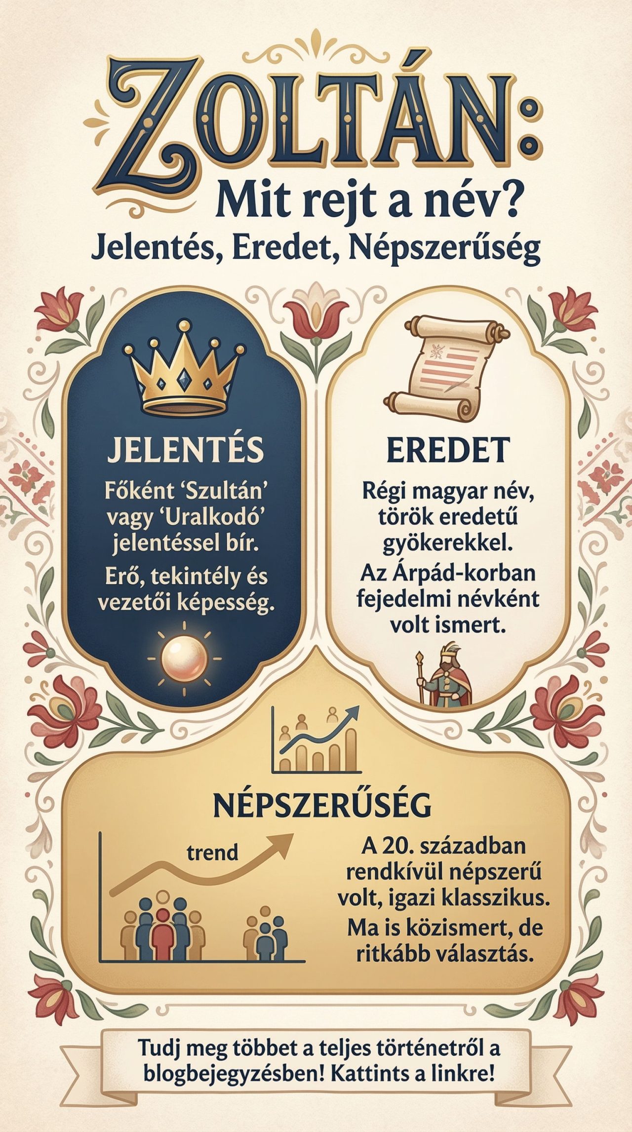 - A Zoltán név történelmileg is jelentős, már a 12. századtól előfordul, és népszerűsége az évszázadok során végigkísérte a magyar történelmet.